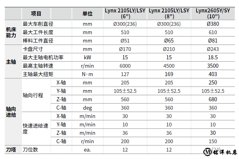 Lynx 2105LY / 2015LSY / 2605Y /2605SY 配备Y轴、副主轴的6/8/10 英寸卡盘 高生产率卧式车削中心...
