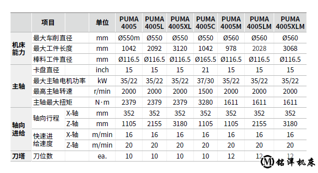 迪恩机床最大加工长度达3m的高性能卧式车削中心 PUMA 4005 / 4005L / 4005XL /4005C / 4005M / 4005LM / 4005XLM...